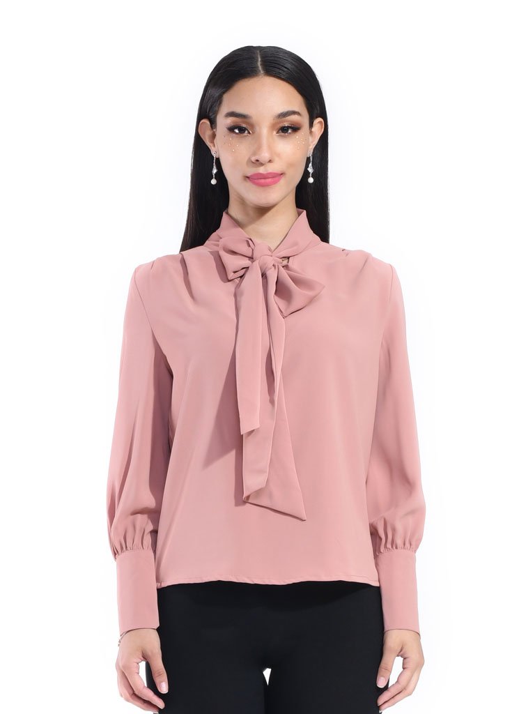 – Bow top – Unlined – Straight cut – Bow front opening – Satin – Model wears M and is 177cm tall