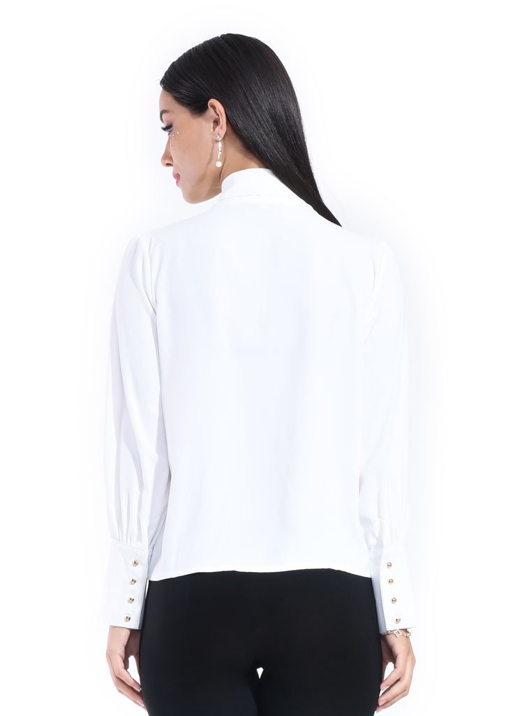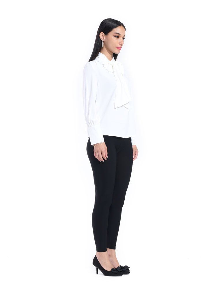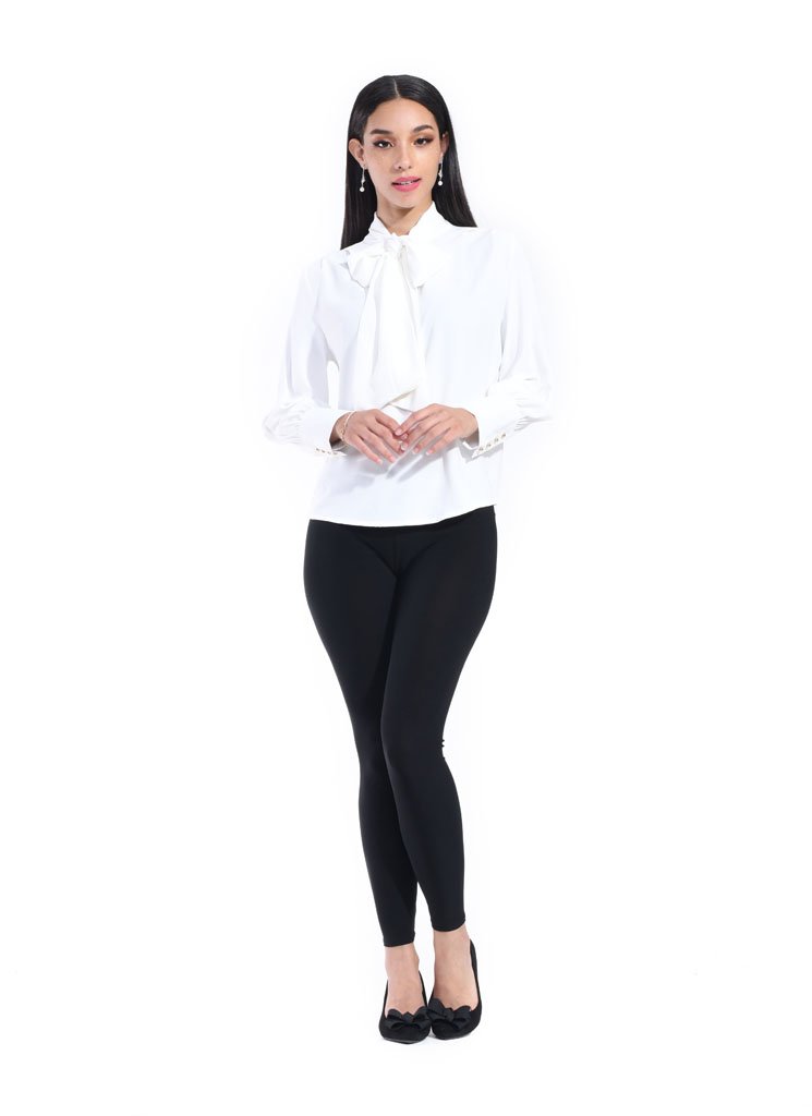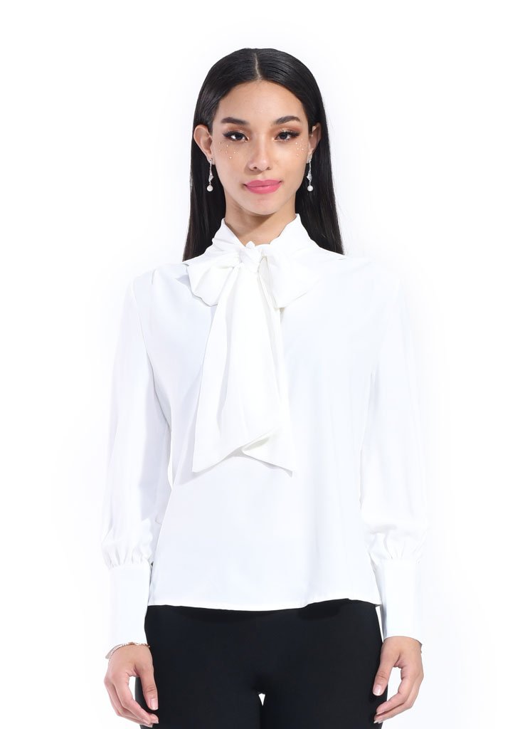 – Bow top – Unlined – Straight cut – Bow front opening – Satin – Model wears M and is 177cm tall