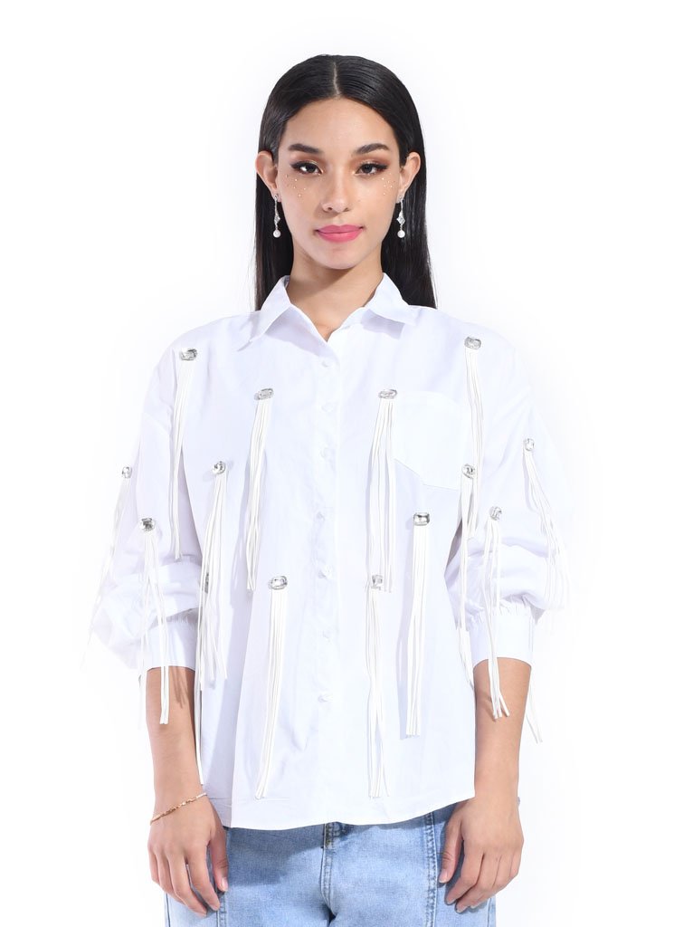 – Button-up top – Unlined – Loose cut – Button front opening – Polyester – Model wears M and is 177cm tall